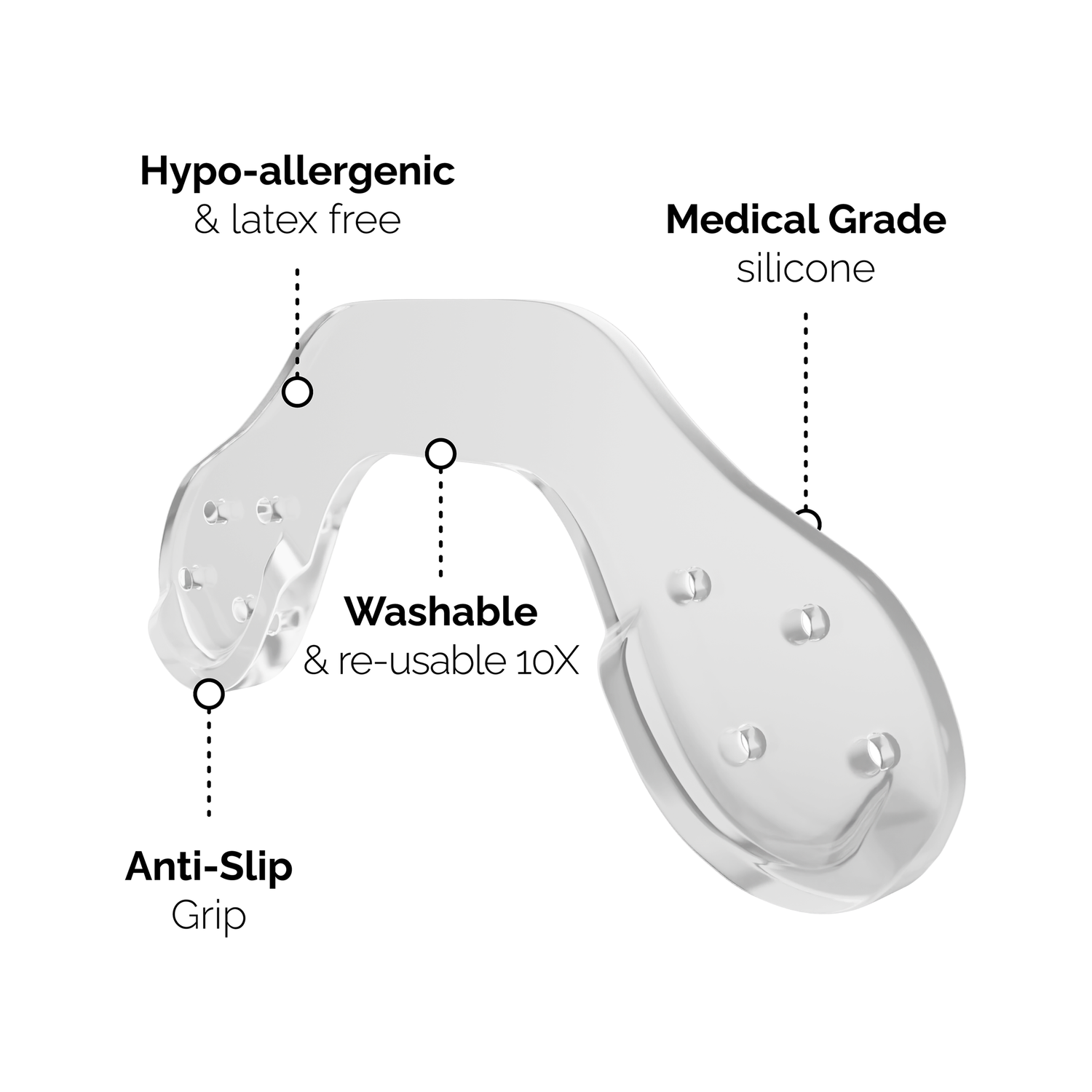 Each box includes 5 reusable silicone strips and a sleek travel case. Strips are washable, easy to apply, and reusable up to 10 times each, giving you a 50-day supply of comfort and stability.